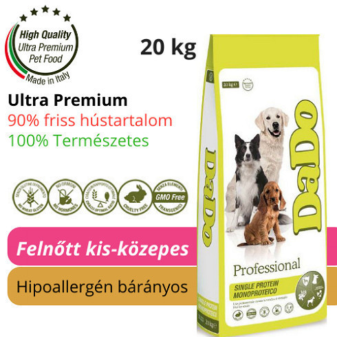 DaDo hipoallergén felnőtt bárányos közepestestű kutyatáp 20kg megbízható minőségű termék. Összetétele és kialakítása a mindennapi igényeket szolgálja. Részletes adatokért lásd a termékleírást és a csomagolást.