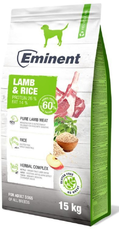 Eminent Dog Adult Lamb & Rice 15+2 kg prémium száraztáp prebiotikumokkal