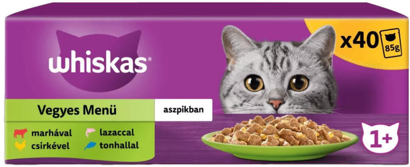 Whiskas Vegyes Válogatás Alutasakos Macskaeledel Aszpikban (Marha, Csirke, Lazac, Tonhal) - 40x85 g